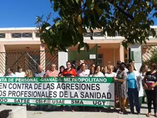 Trabajadores sanitarios y representantes del sindicato CCOO se han concentrado este martes en el centro de salud de Cartuja, en la zona norte de Granada, para condenar la agresión a una médico por parte de la familiar de una paciente.