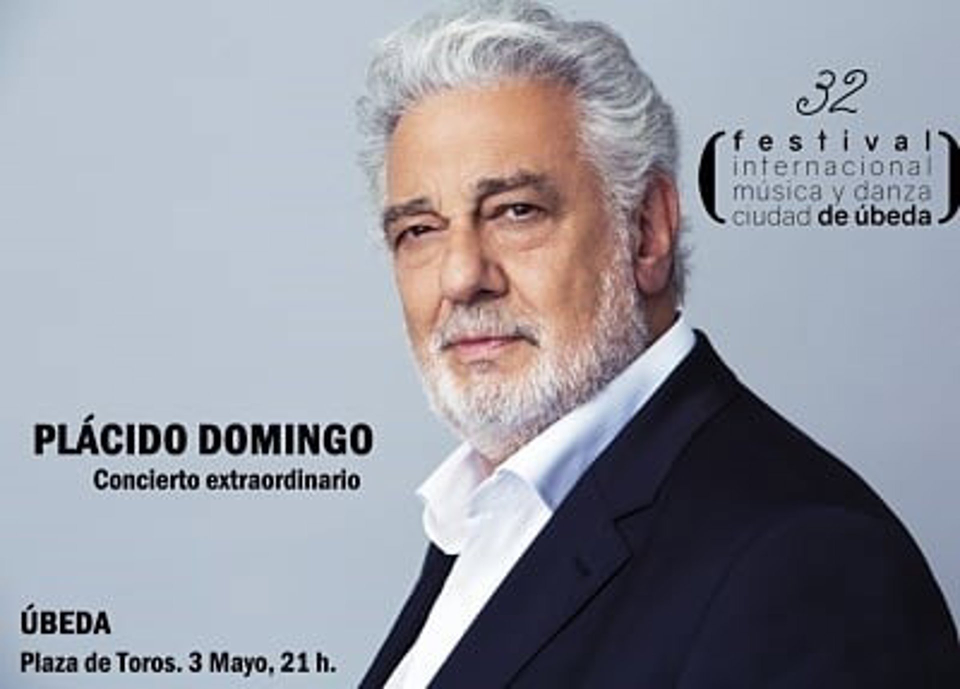 Un concierto extraordinario de Placido Domingo el 3 de mayo en la plaza de toros de Úbeda (Jaén), a partir de las 21,00 horas, será el pistoletazo de salida de la 32 edición del Festival Internacional de Música y Danza 'Ciudad de Úbeda'.