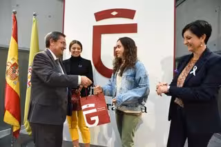El presidente de la Diputación de Granada, José Entrena, ha entregado esta mañana, junto a la diputada de Igualdad y Juventud, Mercedes Garzón, el premio a las dos ganadoras del V Concurso de Microrrelatos contra la violencia de género 'Mónica Carrión' con motivo del 25-N, Día Internacional para la Eliminación de la Violencia contra las Mujeres.