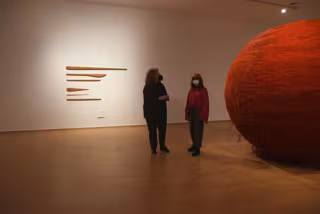 "Desenvolver la envoltura para quedarnos con el origen, el núcleo, la raíz, lo intimo" y "la esfera como contenedor de vida y como forma que acompaña a todo ser vivo", son las palabras que acompañan al proyecto de Segura, formado por tres esculturas: dos creadas con cera de abeja, hilo y pigmento; y otra, compuesta por diferentes maderas.