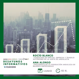 La consejera de Empleo, Empresa y Trabajo Autónomo de la Junta de Andalucía, Rocío Blanco, participa el próximo miércoles 7 de junio en Sevilla en los encuentros informativos de Europa Press Andalucía en colaboración con la Fundación Cajasol junto a la presidenta de la Federación Andaluza de Mujeres Empresarias, Ana Alonso.