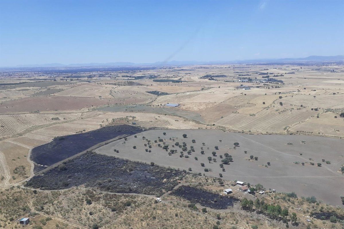 Imagen aérea de la zona afectada por el incendio en Alcaracejos. - PLAN INFOCA