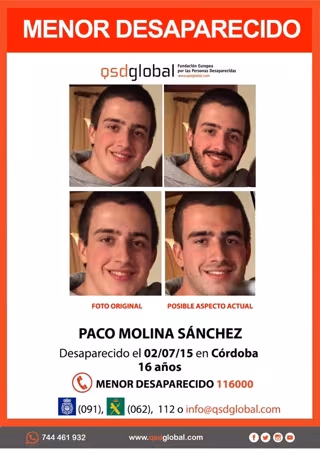 Archivo - Imagenes del cordobés Paco Molina, desaparecido en 2015, mostrando el aspecto que podría tener con 20 años. - GSDGLOBAL - Archivo