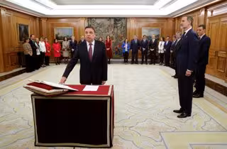 El ministro de Agricultura, Pesca y Alimentación, Luis Planas, jura o promete su cargo ante el Rey Felipe VI, en el Palacio de la Zarzuela de Madrid, a 13 de enero de 2020. - Pool