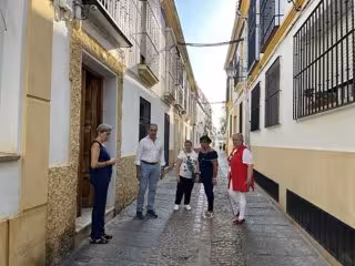 El delegado de Infraestructuras del Ayuntamiento de Córdoba, Antonio Álvarez, en la zona de San Agustín acompañado por vecinos. - AYUNTAMIENTO DE CÓRDOBA
