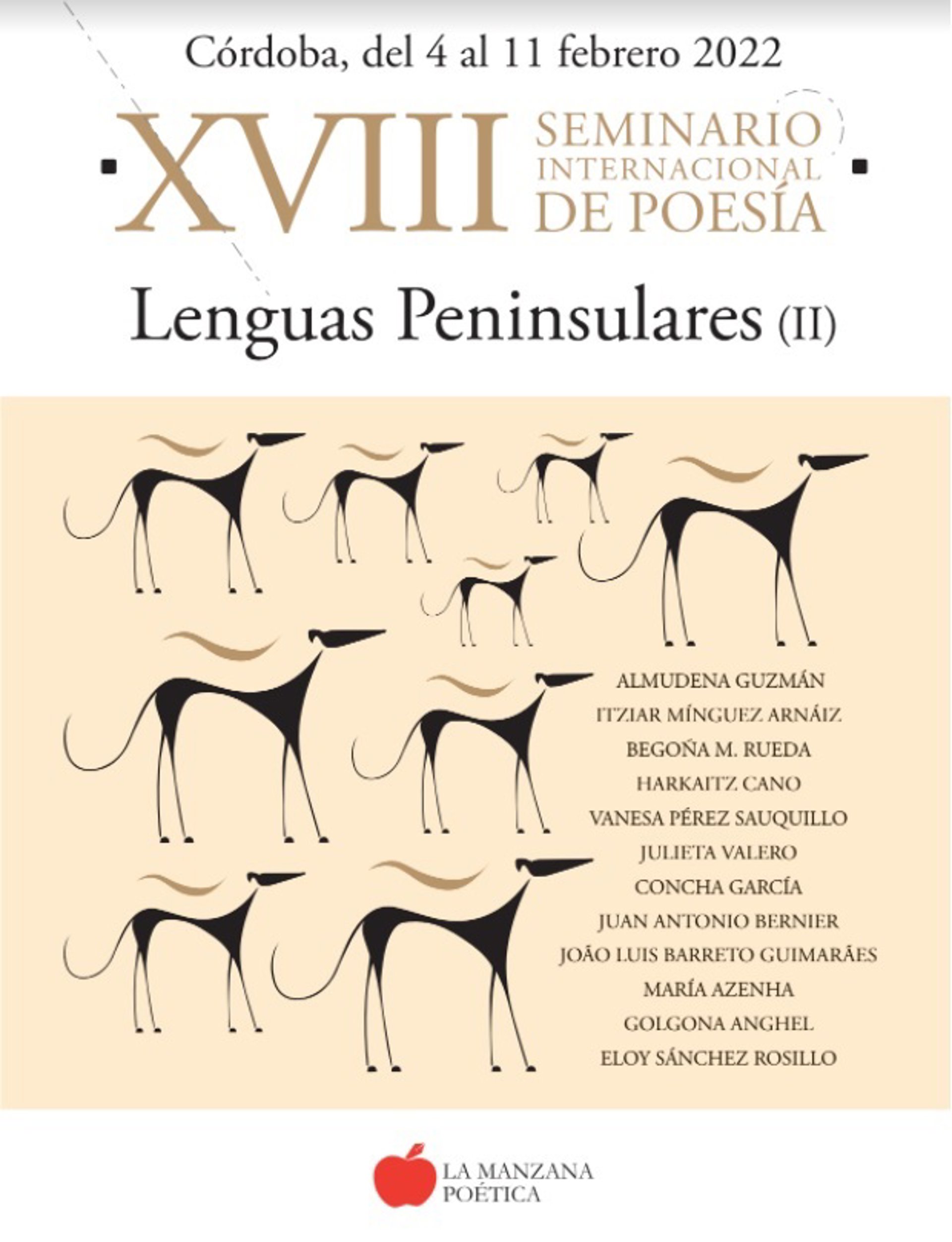 La capital cordobesa celebra del 4 al 11 de febrero el XVIII Seminario Internacional de Poesía que la asociación cultural La Manzana Poética organiza y celebra desde 1999, con el patrocinio del Ministerio de Cultura, y en los últimos años con el subtítulo de 'Lenguas peninsulares', que "acoge la riqueza de las distintas lenguas cooficiales de España que son y reúnen un patrimonio poético y cultural junto a la lengua portuguesa".
