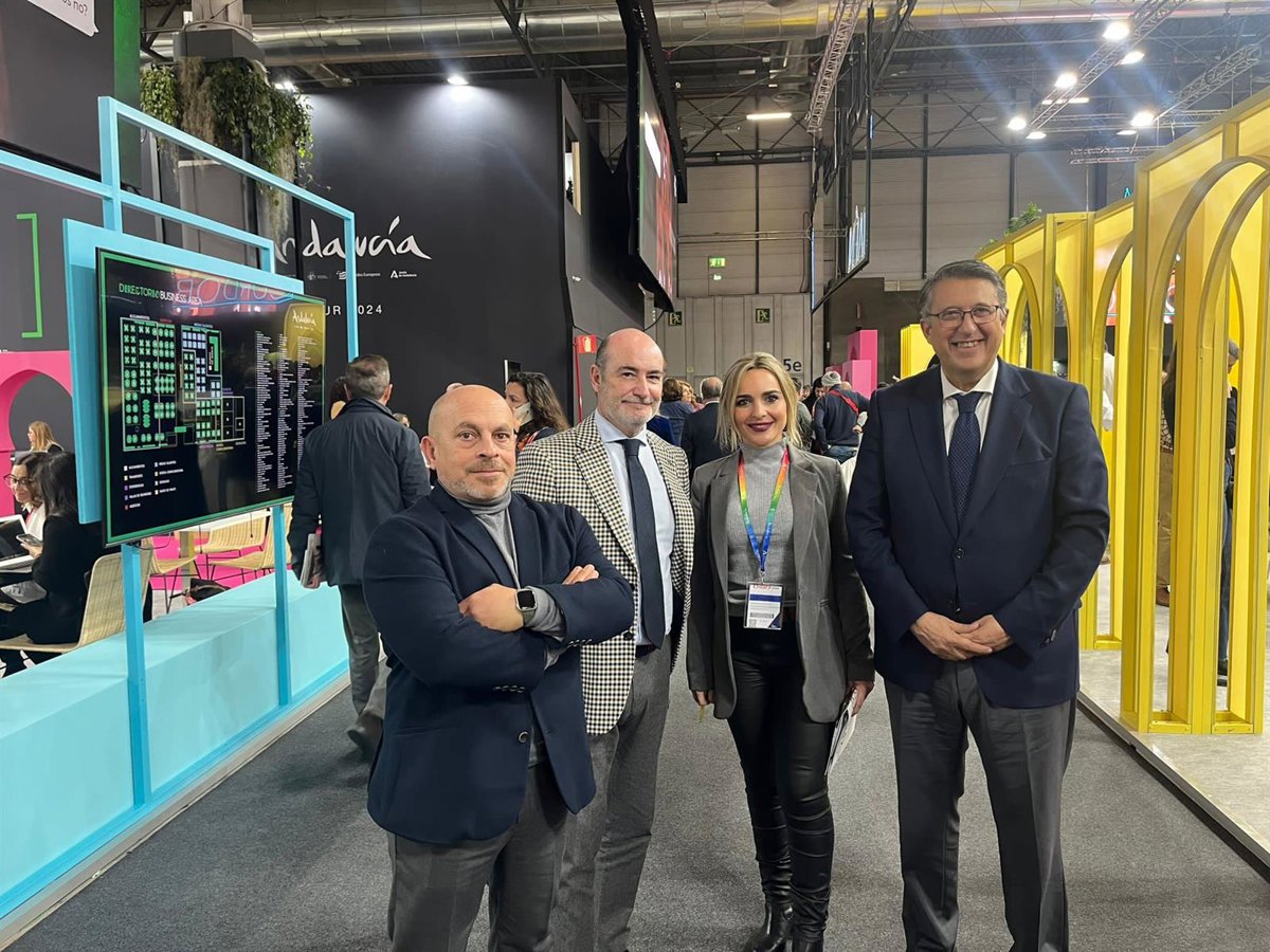El delegado de Turismo, Sostenibilidad y Medio Ambiente del Ayuntamiento de Córdoba, Daniel García-Ibarrola; el delegado de Relaciones Institucionales, Fondos Europeos, Mercados y Comercio y Fiestas, Julián Urbano; el presidente de Córdoba Ecuestre, Rafael Blanco, y los vicepresidentes de la entidad, Juan Antonio Merlos y Francisco José Guerrero han presentado este jueves en la Feria Internacional de Turismo (Fitur) en Madrid el variado programa de actividades y eventos de Córdoba Ecuestre, como embajador de la marca Córdoba y "donde la calidad es el factor diferencial de la presente edición".