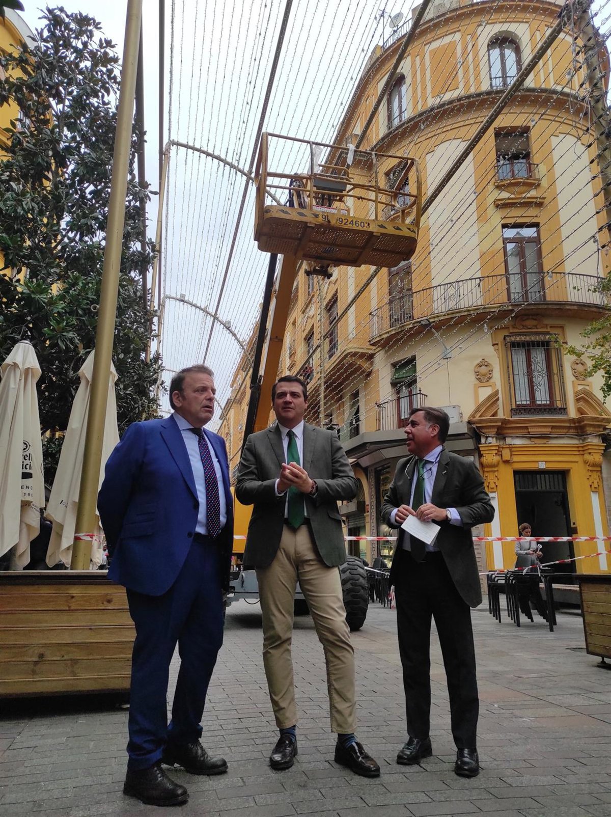 José María Bellido con Miguel Ruiz Madruga y Julián Urbano presentan el alumbrado de Navidad 2023. - EUROPA PRESS