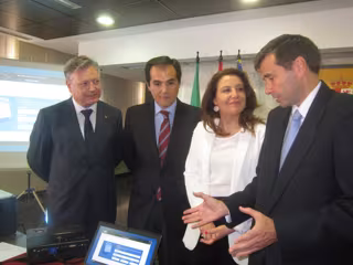El subsecretario del Ministerio del Interior, Luis Aguilera; acompañado por la delegada del Gobierno en Andalucía, Carmen Crespo; el alcalde de Córdoba, José Antonio Nieto, y el subdelegado del Gobierno en la provincia, Juan José Primo Jurado, ha presentado este martes en la Subdelegación del Gobierno en Córdoba este sistema, cuyo objetivo, según ha destacado Aguilera, es "incrementar la velocidad, fiabilidad y transparencia del escrutinio, así como facilitar la labor de las personas que colaboran en el proceso".