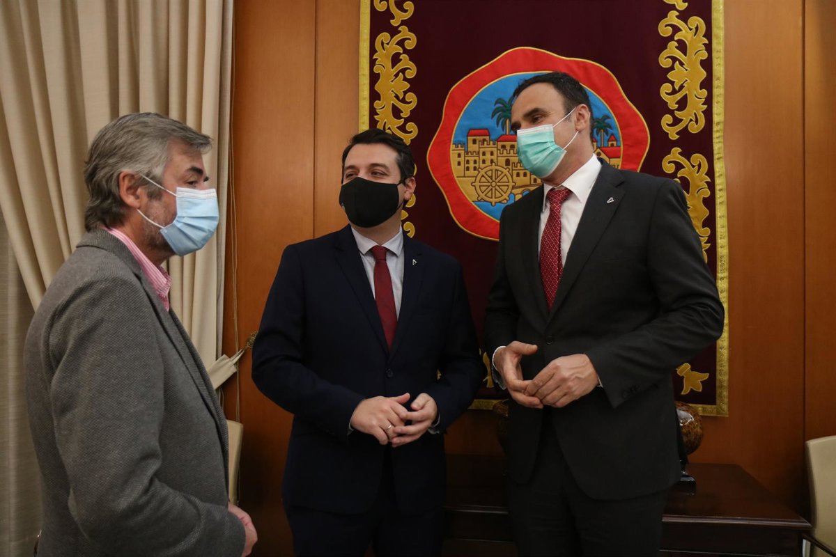 El alcalde de Córdoba, José María Bellido, y el alcalde de Lebrija (Sevilla), José Barroso, junto al concejal de Presidencia de Córdoba, Miguel Ángel Torrico. - AYUNTAMIENTO DE CÓRDOBA