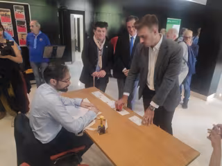 El concejal de Juventud de Granada, Fernando Parra, en una de las oficinas temporales para matasellar envíos - CORREOS