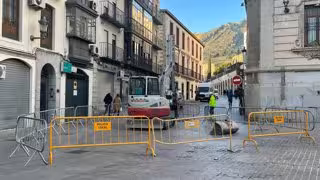 En unos días, cuando se acometa el tramo de la plaza hacia la calle Maestra, la salida y entrada a aparcamientos como el del Obispado se hará por la calle Obispo González, que ya estará abierta al paso y podrá usarse en ambos sentidos de forma temporal.