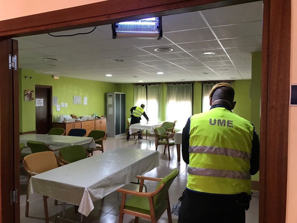 Efectivos de la UME desinfectando la Residencia de Nuestra Señora de Gracia de Alcantarilla en Belalcázar en una imagen de archivo. - FUNDACIÓN PRODE