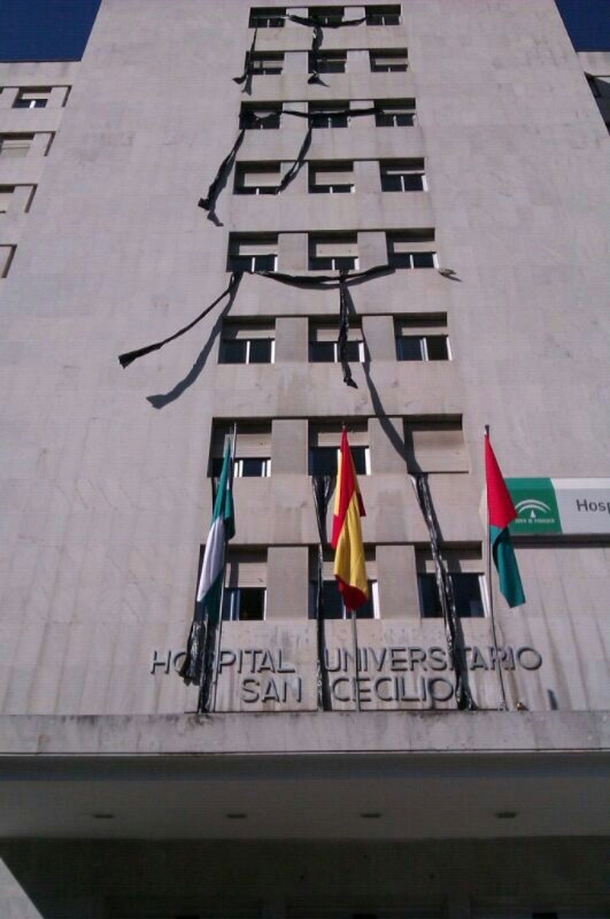 Los sindicatos CCOO, UGT, CSIF, SATSE, S.M.A. y USAE, representados en Junta de Personal del Hospital San Cecilio, han manifestado este miércoles su "rechazo" a la fusión de los hospitales de Granada por "falta de transparencia" en el proceso con una concentración de trabajadores y la colocación de crespones negros en la fachada del centro sanitario, así como una procesión simbólica hasta la dirección Gerencia con la lectura de un manifiesto de protesta.
