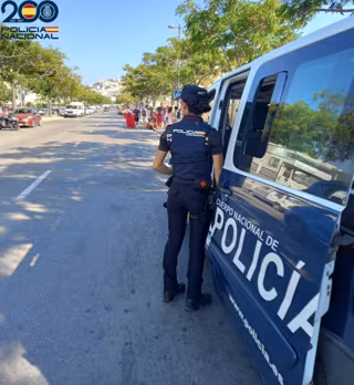 Una agente de la Policía Nacional junto a un furgón oficial. - POLICÍA NACIONAL
