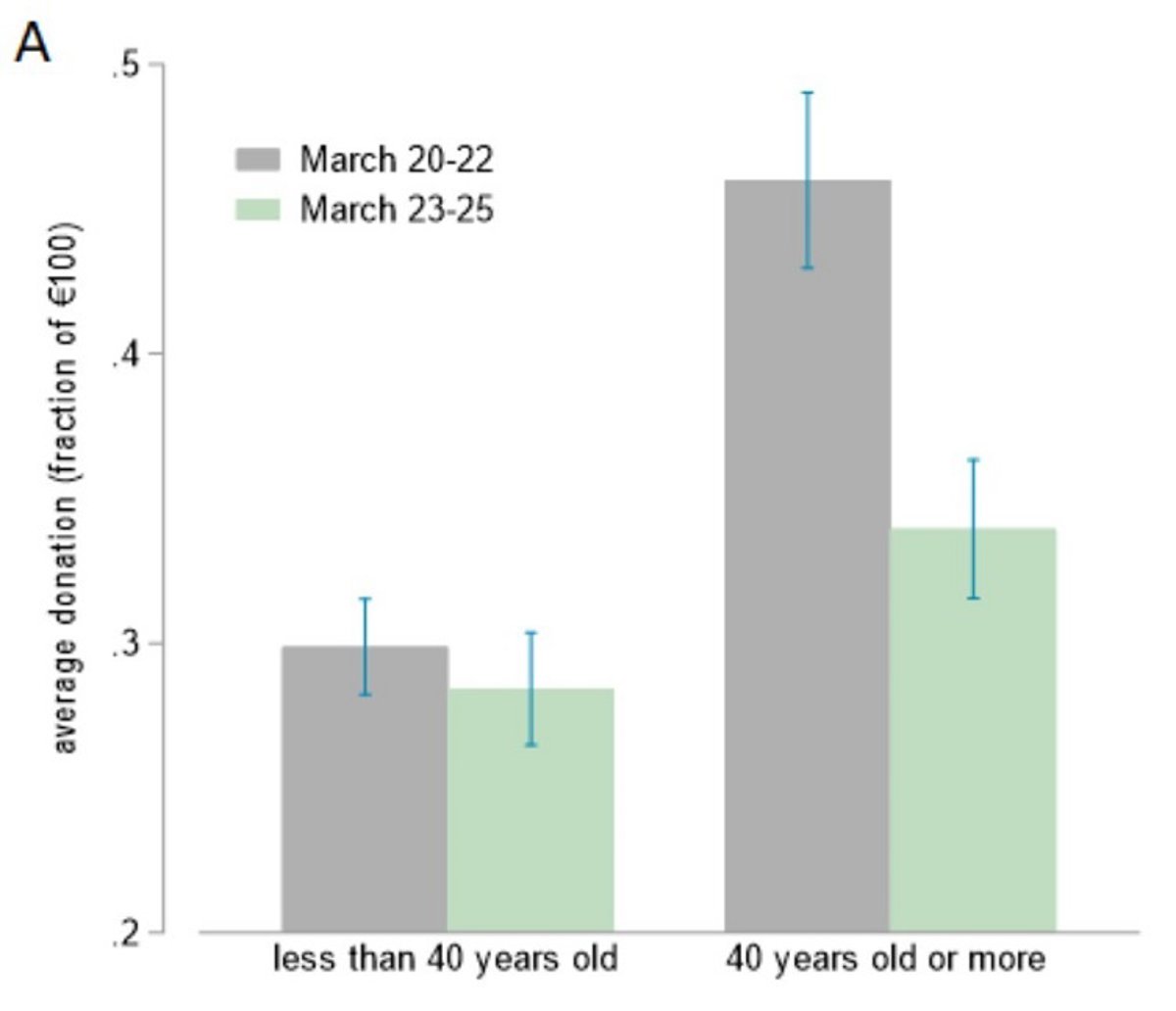 Los resultados indican que, conforme avanzaban los días y la pandemia en España, los participantes disminuían la proporción de donaciones, especialmente la población de mayor edad.