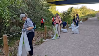 Un grupo de personas durante una recogida de residuos. - CRUZ ROJA