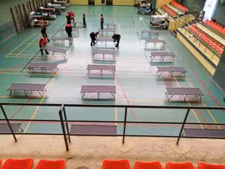 Camas cedidas por Cruz Roja para personas sin hogar en el pabellón deportivo de La Salobreja - CRUZ ROJA
