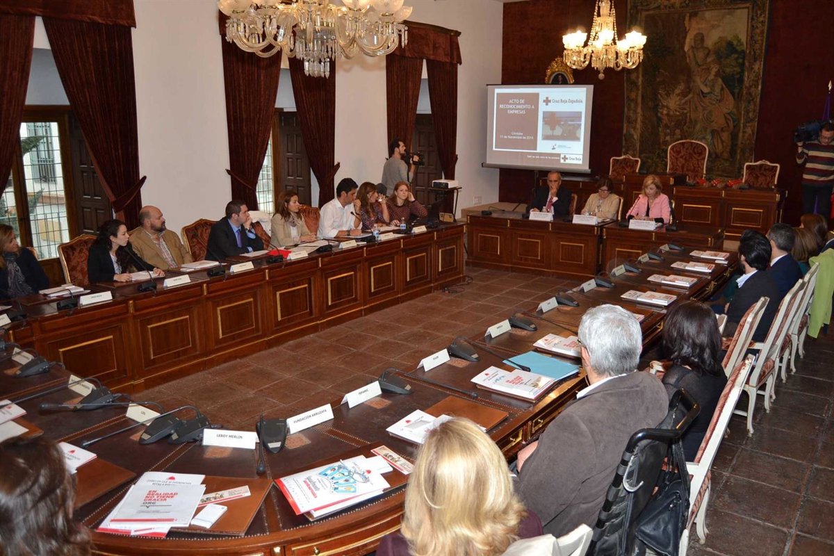 El Salón de Plenos de la Diputación de Córdoba ha acogido este lunes el acto de entrega de reconocimientos de Cruz Roja Española a las empresas que han participado en su Plan de Empleo favoreciendo la inserción laboral de personas en riesgo de exclusión.
