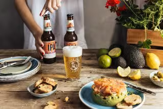 Esta nueva IPA de Cruzcampo marida a la perfección con tartar de salmón y aguacate, ya que su punto cítrico casa con el ahumado y la untuosidad del aguacate y el salmón.