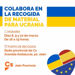 Ciudadanos (Cs) Jaén pone su sede provincial a disposición de las personas que quieran colaborar con el pueblo ucraniano ante la crisis humanitaria que está provocando la guerra declarada por Rusia.
