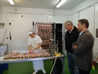 Gómez Balsera ha visitado, acompañado del portavoz municipal de Cs de Villaviciosa de Córdoba, José Atanasio Muñoz, y la diputada provincial de la formación naranja Erika Nevado la empresa de productos cárnicos 'El Canito' de Villaviciosa de Córdoba para conocer de primera mano el funcionamiento de este tipo de empresas.