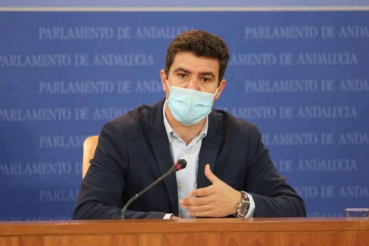El portavoz de Cs en el Parlamento de Andalucía, Sergio Romero, este miércoles en rueda de prensa. - CIUDADANOS