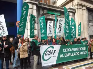 Delegados de CSIF se concentrado ante las puertas de la Delegación de Igualdad, Salud y Políticas Sociales de la Junta en Jaén bajo el lema 'Cero agresiones al empleado pública' para protestar contra las agresiones a los empleados públicos sanitarios y reivindicar un observatorio de prevención de agresiones físicas y verbales.