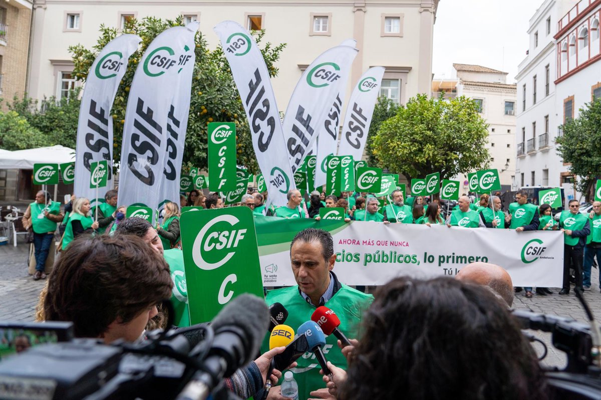 La Central Sindical Independiente y de Funcionarios (CSIF) en Andalucía se ha concentrado este miércoles ante las delegaciones del Gobierno de la Junta en las ocho provincias para reclamar unos servicios públicos de calidad y para reivindicar que se corrija el "déficit" de personal que acumulan los ámbitos de la Sanidad, la Educación, la justicia y la administración general de la Junta, y que el sindicato cifra en 45.000 efectivos en toda Andalucía.