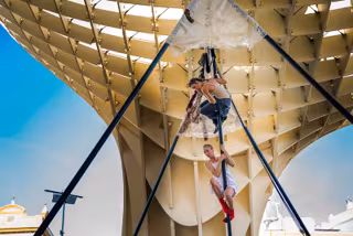 Un espectáculo en el que la compañía intenta fusionar la dramaturgia con la técnica, empleando un lenguaje muy visual e incorporando acrobacias aéreas, malabares, suspensión capilar, danza y teatro.
