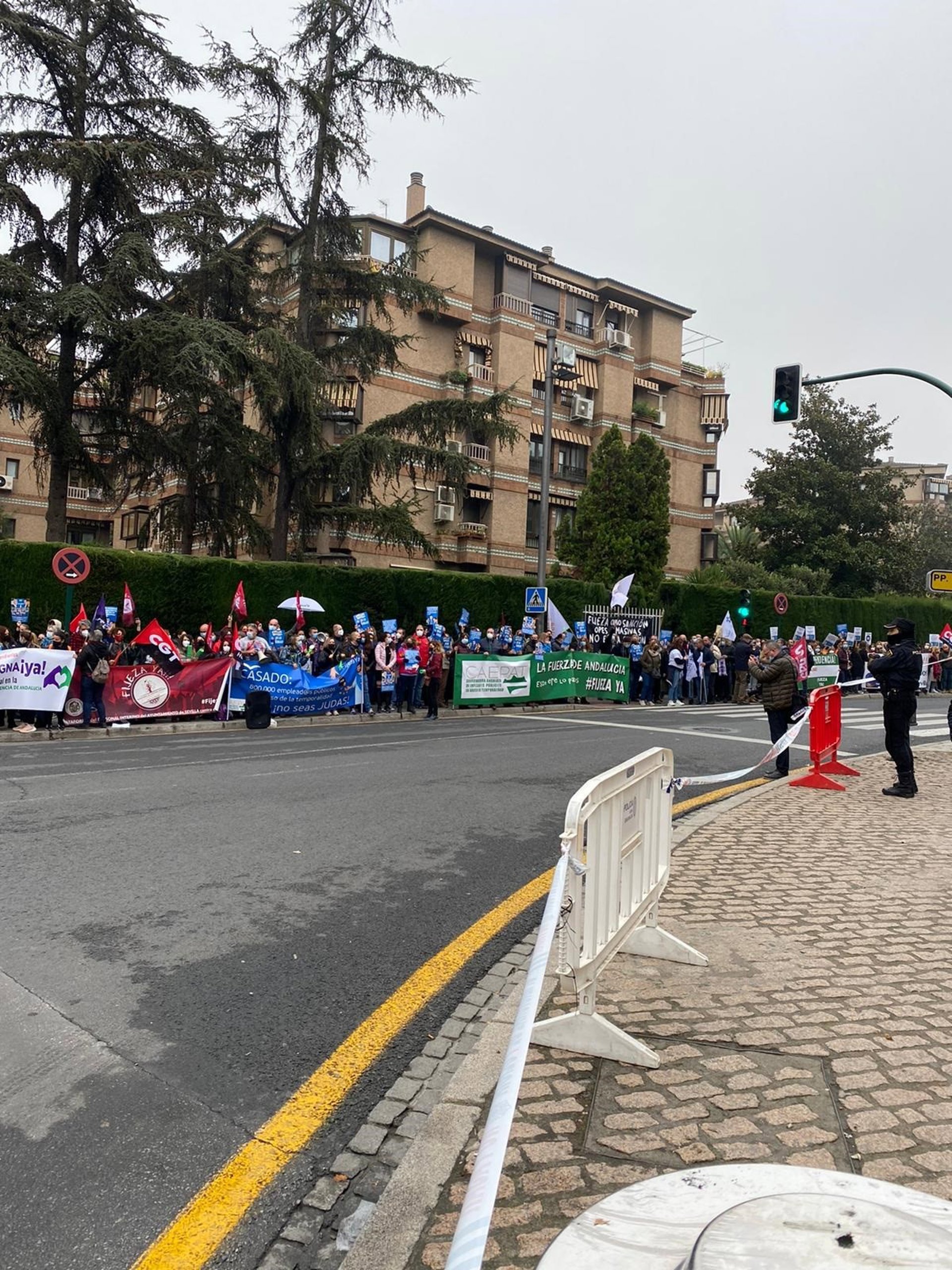Esta protesta se desarrolla en la mañana de este sábado mientras tiene lugar en el Palacio de Exposiciones y Congresos el XVI Congreso Autonómico del PP andaluz.