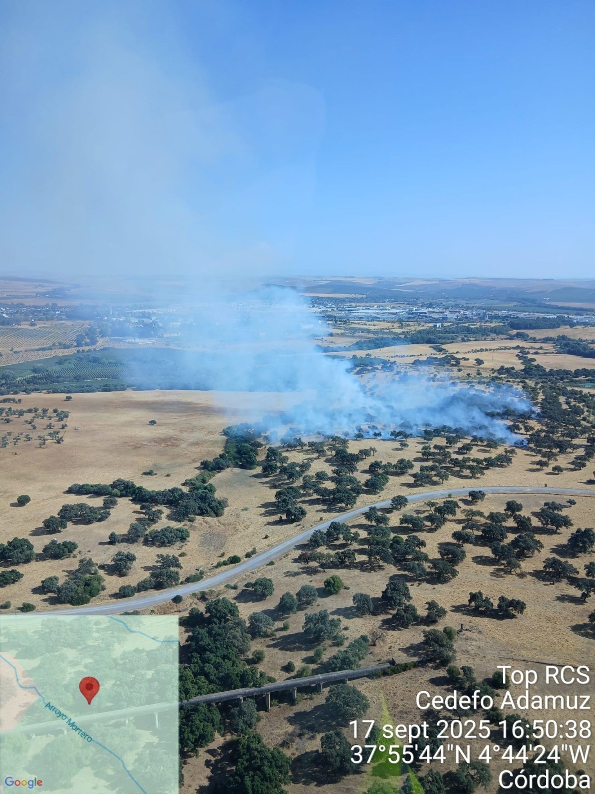 Según han informado desde el Plan Infoca, el fuego está activo desde las 16,30 horas y las llamas afectan a una zona de dehesa o terreno agrícola abandonado, cerca del arroyo Mortero, pendientes de la evolución en próximas horas.