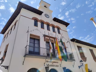 Fachada del Ayuntamiento de Marmolejo, con las banderas a media asta - FACEBOOK AYUNTAMIENTO DE MARMOLEJO