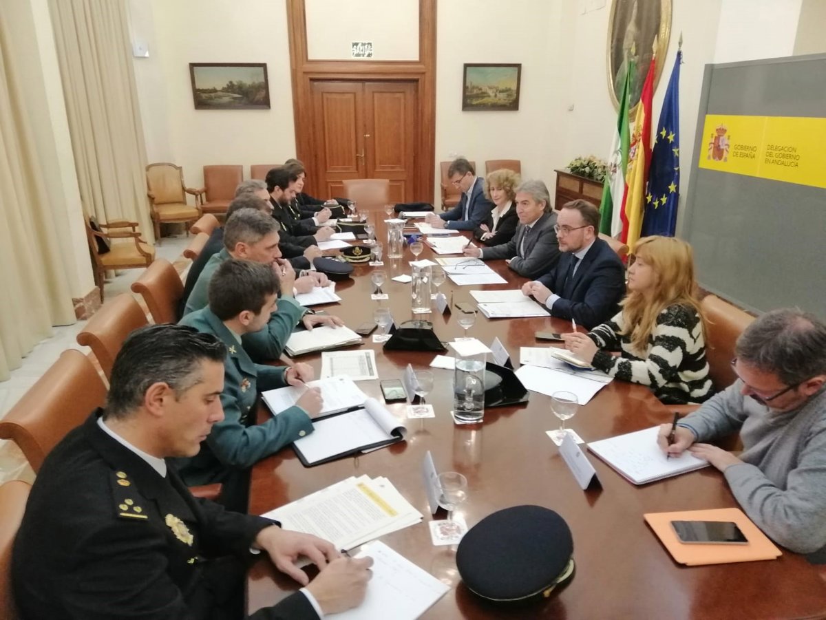 El delegado, acompañado de la Jefa de la Unidad de Coordinación contra la Violencia de Género de la Delegación del Gobierno en Andalucía, Maribel Montaño, ha trasladado el contenido de la nueva instrucción del Gobierno a los Jefes Superiores de Policía Nacional de Andalucía Occidental y Oriental, José Antonio Pérez y Jesús Redondo, respectivamente, junto a sus jefes de Unidades de Atención a la Familia y Mujer (UFAM), entre otros mandos de Extranjería y de Trata de Seres de Policía Nacional, así como al Teniente Coronel Jefe de la Sección de Información de la 4 Zona de la Guardia Civil, Ramón Clemente junto al comandante de Policía Judicial.