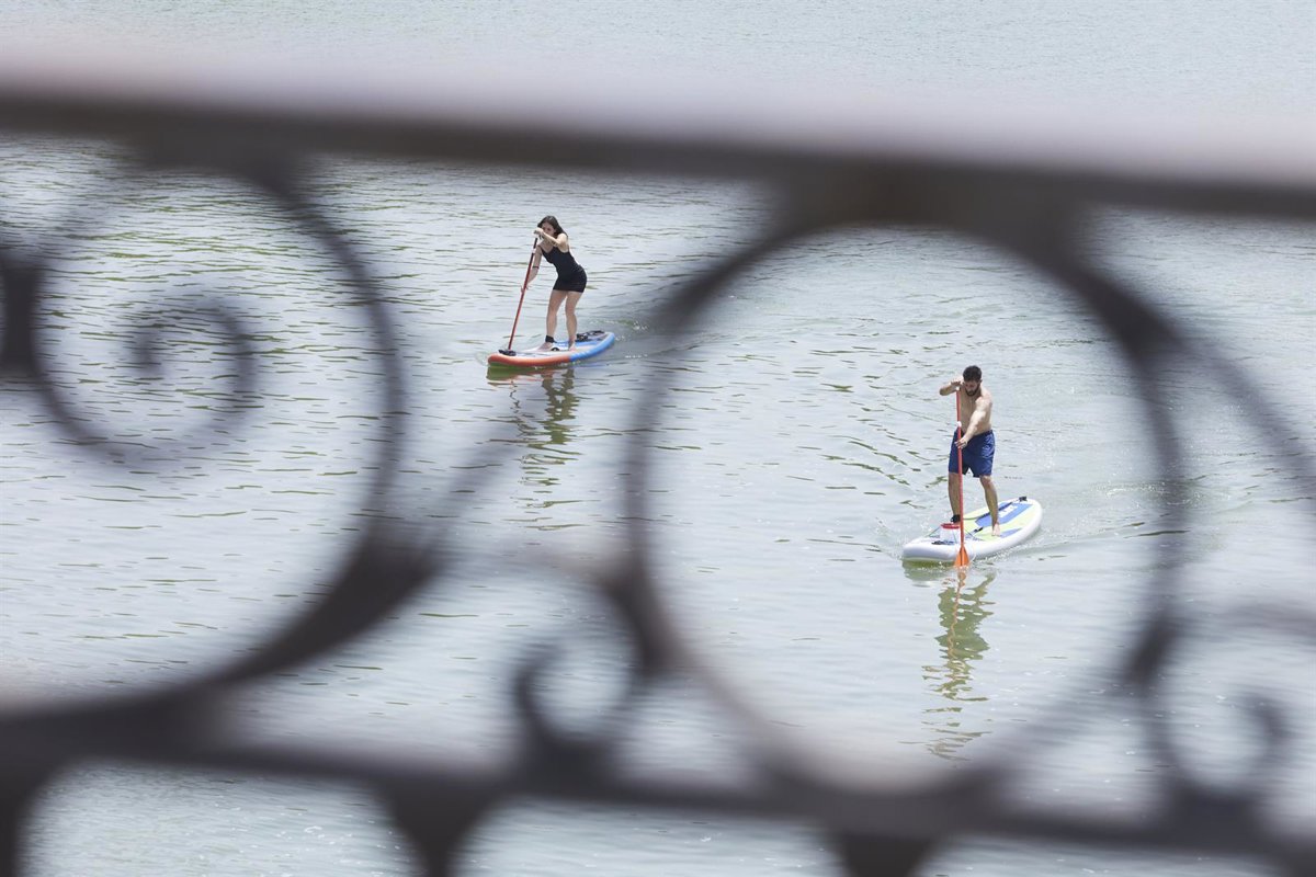Archivo - Dos personas practican padel surf bajo el puente de Isabel II (Sevilla), en imagen de archivo. - Joaquin Corchero - Europa Press - Archivo