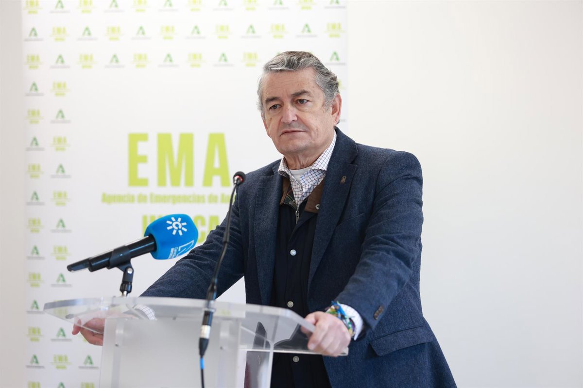 El consejero de Sanidad, Presidencia y Emergencias de la Junta de Andalucía, Antonio Sanz, interviene en la inauguración del nuevo Centro de Defensa Forestal (Cedefo) El Pedroso. A 5 de diciembre de 2025, en El Pedroso, Sevilla (Andalucía, España). - Rocío Ruz - Europa Press