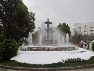 En Granada capital, en pleno centro, aunque no se están registrando incidentes de gravedad, se ha producido una imagen curiosa, ya que la emblemática Fuente de las Batallas se ha desbordado y está rezumando espuma.