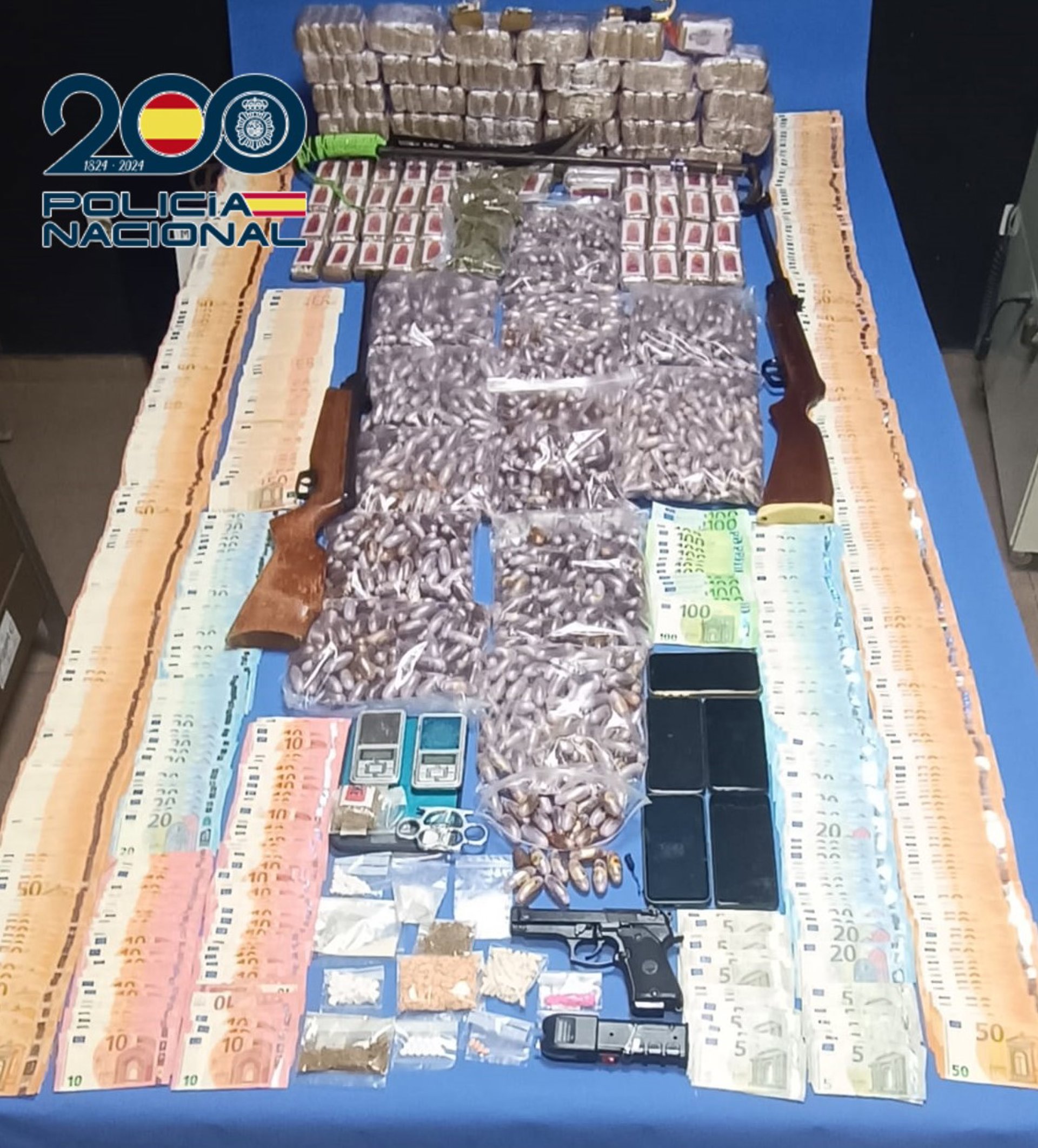La Policía Nacional en Córdoba, en una operación conjunta con agentes de Madrid, ha desarticulado una organización criminal asentada en la capital cordobesa y dedicada presuntamente a la venta y distribución de sustancias estupefacientes. Han detenido a 17 personas en ocho registros domiciliarios, en los cuales han intervenido 34,585 kilos de hachís, 546 gramos de cocaína de gran pureza, un kilo de marihuana, 938 comprimidos de diferentes fármacos, diverso material y utensilios para la preparación de las dosis, 69.731 euros, armas blancas, así como armas de fuego y munición.