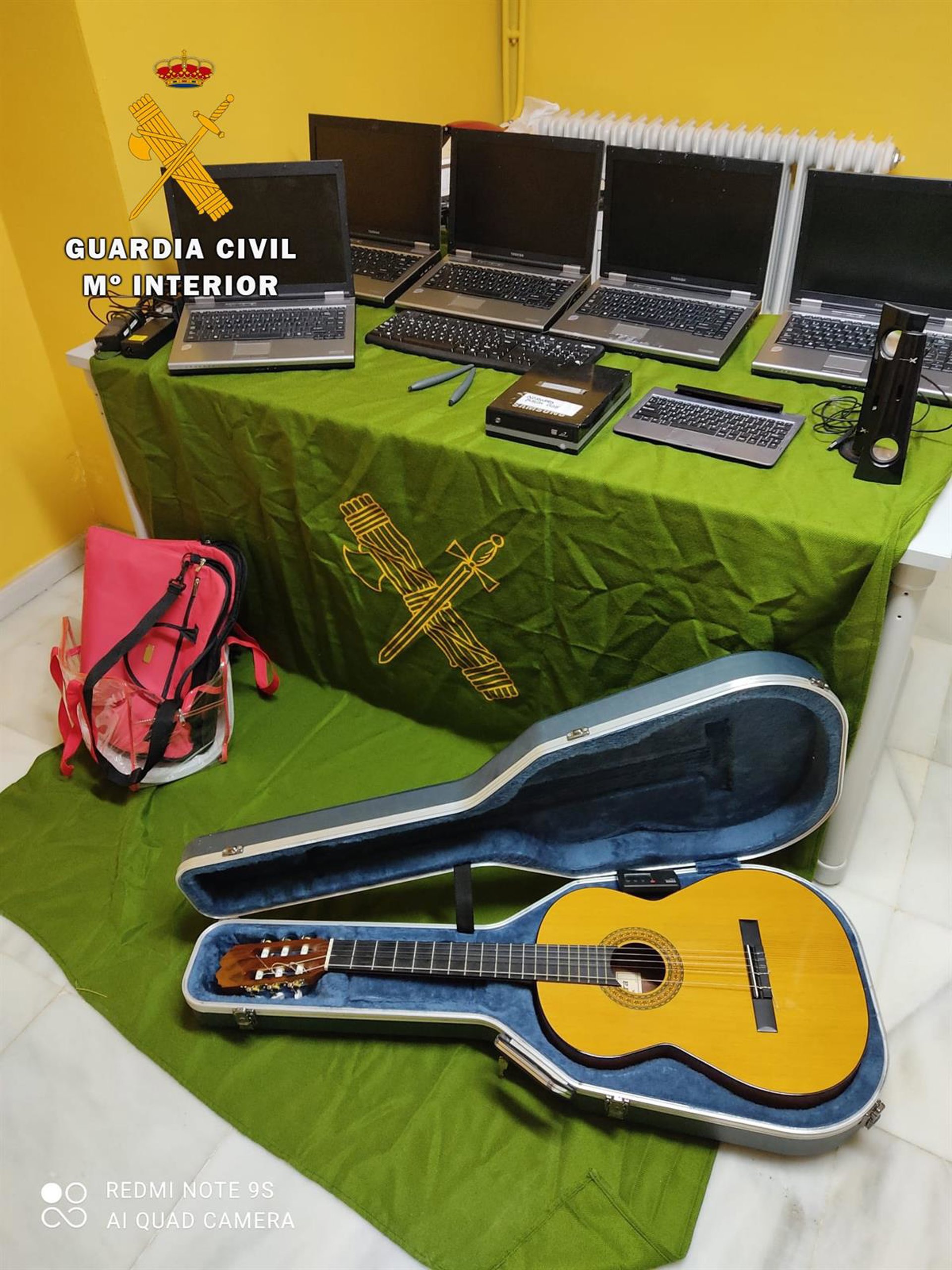 Los ordenadores y la guitarra recuperados por la Guardia Civil. - GUARDIA CIVIL