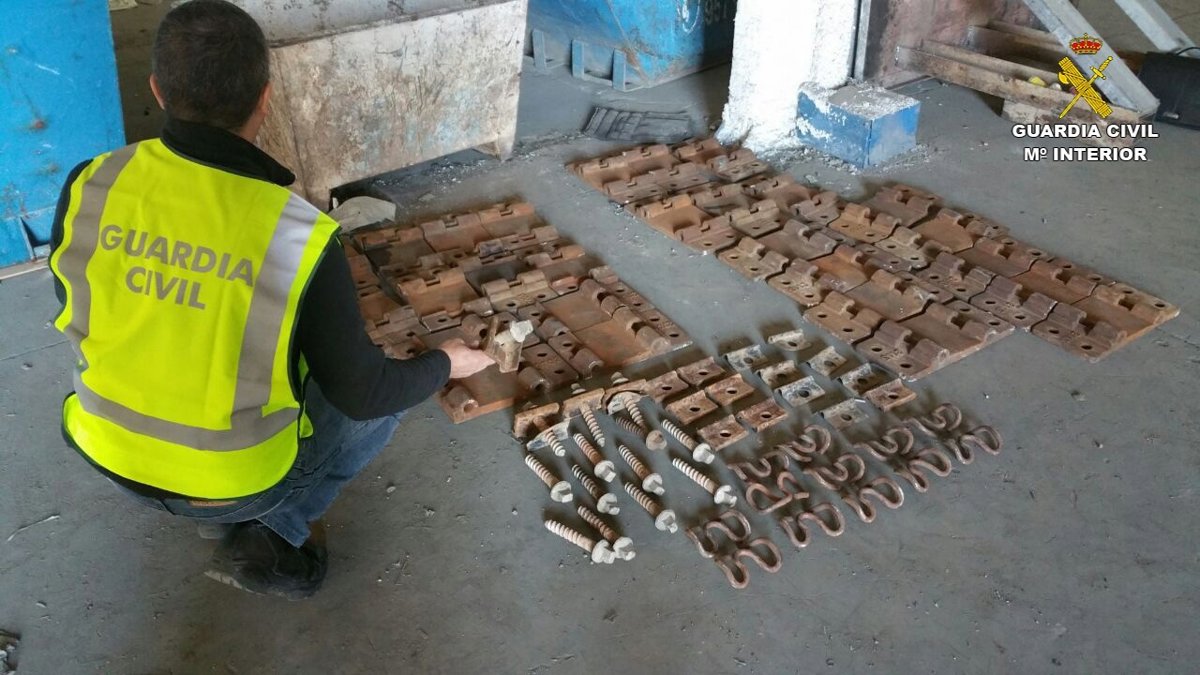 El desarrollo de la investigación permitió localizar en varios centros de reciclaje de esta capital más de ocho toneladas de material férreo que coincidía con el sustraído en el intercambiador, así como cableado de cobre del utilizado en las comunicaciones del AVE.