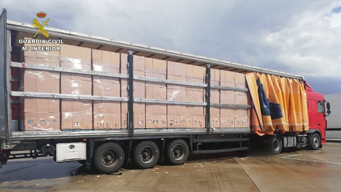 Los investigadores interceptaron un camión cuando salía de una de las naves perteneciente a la organización y, tras inspeccionar su carga, hallaron numerosos 'pallets' de tabaco falsificado, ya preparado para su distribución y venta, ocultos tras otros dos 'pallets' sin carga.
