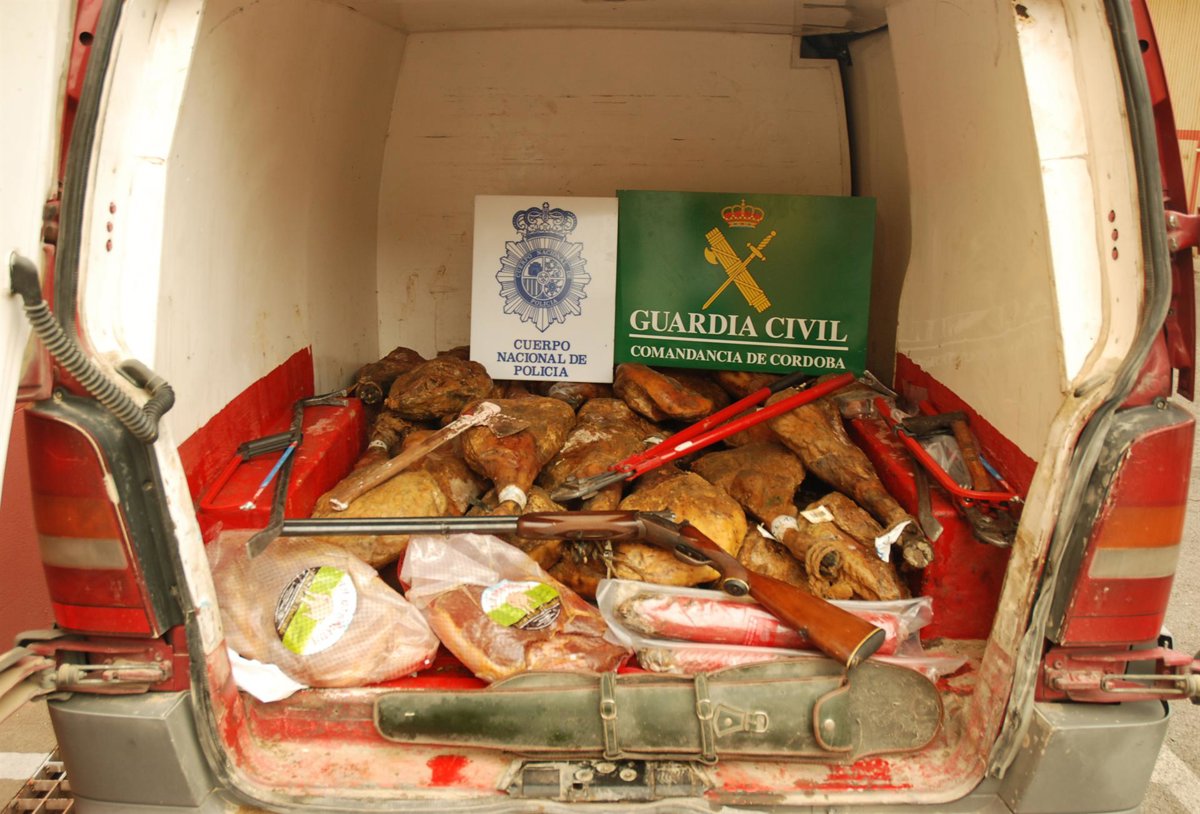 Agentes de la Comisaría Provincial del Cuerpo Nacional de Policía de Córdoba y de la Comandancia de la Guardia Civil de Córdoba han detenido en la denominada 'Operación Jamón' a cinco personas como presuntas autoras de cuatro robos con fuerza en naves industriales, recuperando 54 jamones ibéricos, gran cantidad de productos congelados y embutidos, todo ello de gran calidad. Los detenidos pasan este sábado a disposición judicial.