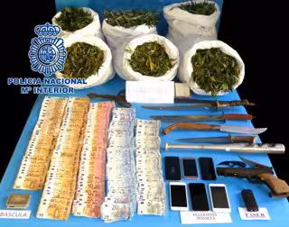 Además, durante la intervención los agentes han desmantelando tres plantaciones de marihuana que han arrojado un peso total de más de 23 kilogramos, diversas cantidades de hachís, una pistola 'tasser', una pistola de aire comprimido y varias armas blancas, así como casi 14.000 euros en efectivo.