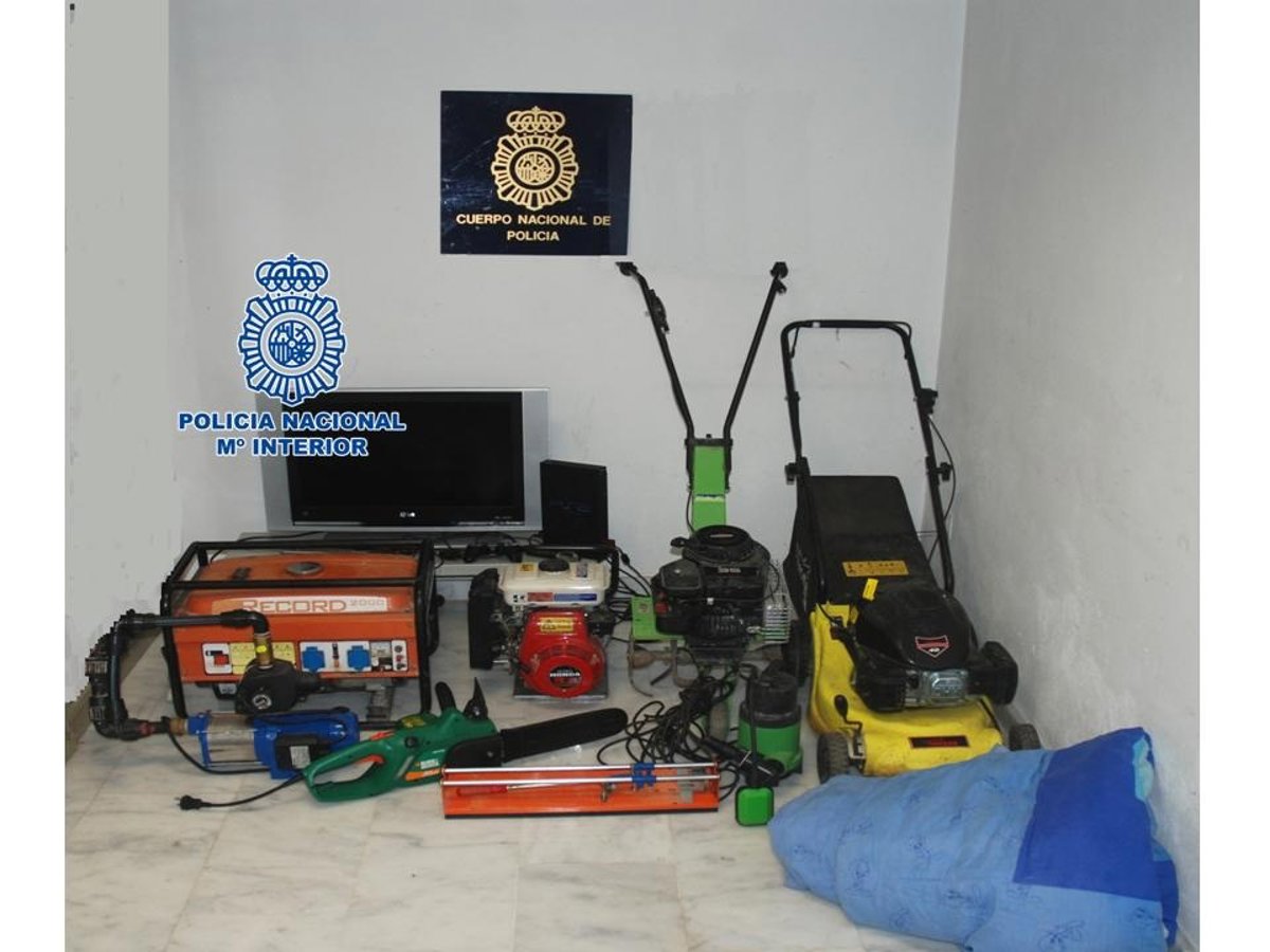 Una vez que los investigadores determinaron a los dos presuntos autores de los robos, llevaron a cabo un registro en un piso motrileño, donde detuvieron a dos hombres y recuperaron una motosierra eléctrica, una moto azada, una motobomba, un corta azulejos, una televisión, un TDT, una Play Station, dos mandos a distancia, un edredón, un corta césped y una bomba de agua.