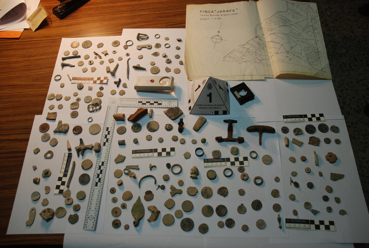 En los seis registros efectuados en los domicilios de los detenidos se han intervenido un total de 1.572 piezas de valor arqueológico de todo tipo, así como armas de fuego, munición y utensilios para la localización de restos, de excavación y manipulación de dicho material arqueológico. Todas las piezas arqueológicas han sido depositadas en el Museo Provincial de Jaén para su estudio y catalogación.