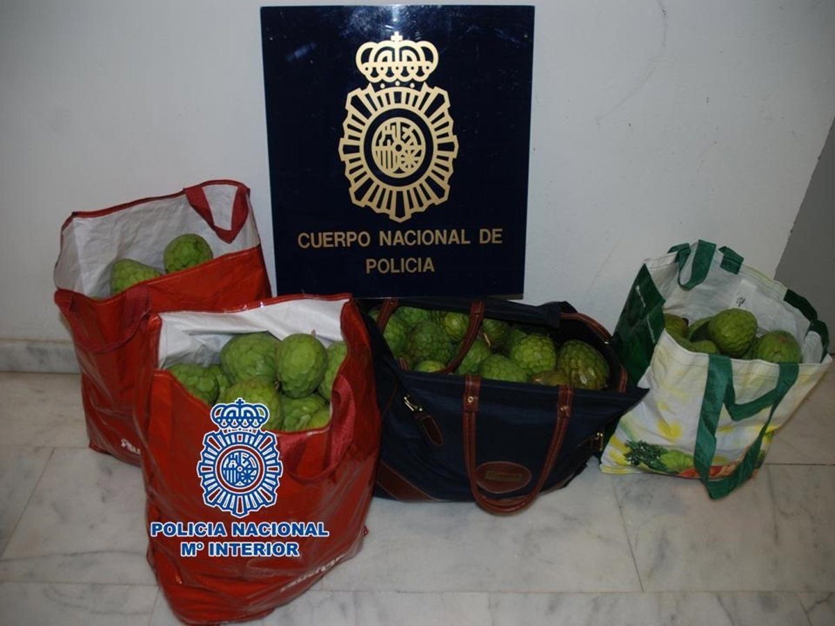 En el primer dispositivo policial, los agentes que patrullaban las zonas específicas en prevención de estos hechos delictivos procedieron a las detenciones de tres personas, dos hombres y una mujer, los cuales fueron sorprendidos cuando transportaban en un vehículo bolsas con unos 70 kilogramos de chirimoyas.