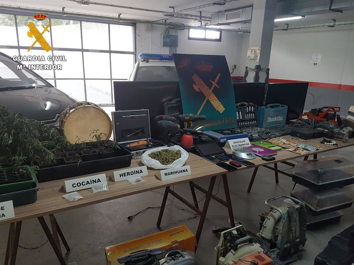 Una de las plantaciones estaba siendo acondicionada para albergar más de 2.000 plantas. Se han intervenido 35 dosis de cocaína, 26 dosis de heroína, 225 gramos de cogollos de marihuana, 68 plantas de marihuana, cuatro básculas de precisión, siete terminales móviles, más de 1.275 euros en billetes fraccionados, joyas y numerosas herramientas y electrodomésticos de ilícita procedencia.