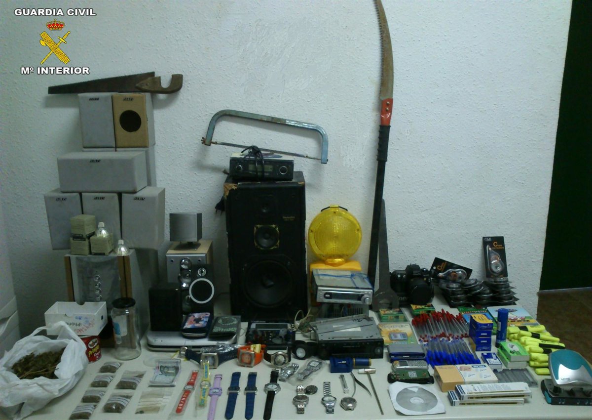 De hecho, tras su registro, el Instituto Armado se ha incautado en esa vivienda de "gran parte" del material sustraído en los robos investigados, además de 75 gramos de marihuana "preparada y dispuesta para su venta" en 'bolsitas' de plástico, una cámara de fotos, varias tarjetas de memoria, cintas de grabación, varios relojes de pulsera, material informático, un juego de altavoces y "numeroso" material escolar.