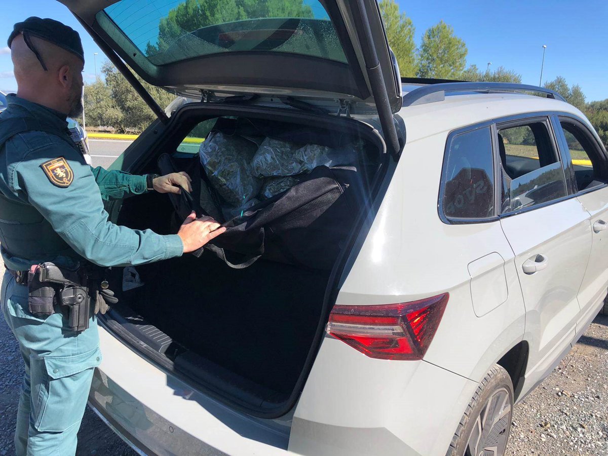 Según ha informado la Benemérita en una nota, el vehículo estacionó en uno de los márgenes de la vía antes de llegar al punto donde se encontraban los guardias civiles, lo que resultó sospechoso, por lo que los agentes se trasladaron rápidamente a dicho punto para identificar a sus ocupantes.