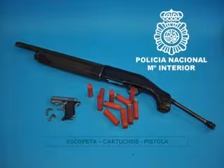 Tras las primeras indagaciones fueron localizadas las dos armas en el interior de la parcela de la vivienda, la escopeta encasquillada con un cartucho en la ventana de expulsión atrapado y sin expulsar y una pistola con un cartucho en la recámara y dispuesta para su uso con el seguro sin activar.